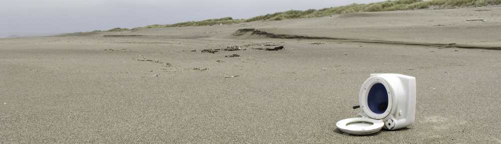 The banner image above shows a toilet that washed ashore at Abbotts Lagoon, Point Reyes National Seashore on 17 July, 2010.