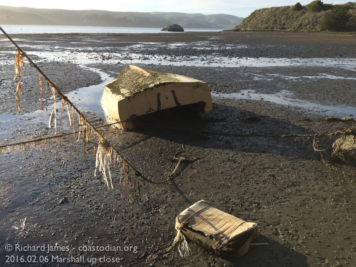 IMG_2927 Published April 2, 2016 at 1200 × 900 in Respect Tomales Bay – The glass tells a story Capsized boat, seat cushion making an escape. ©Richard James – coastodian.org