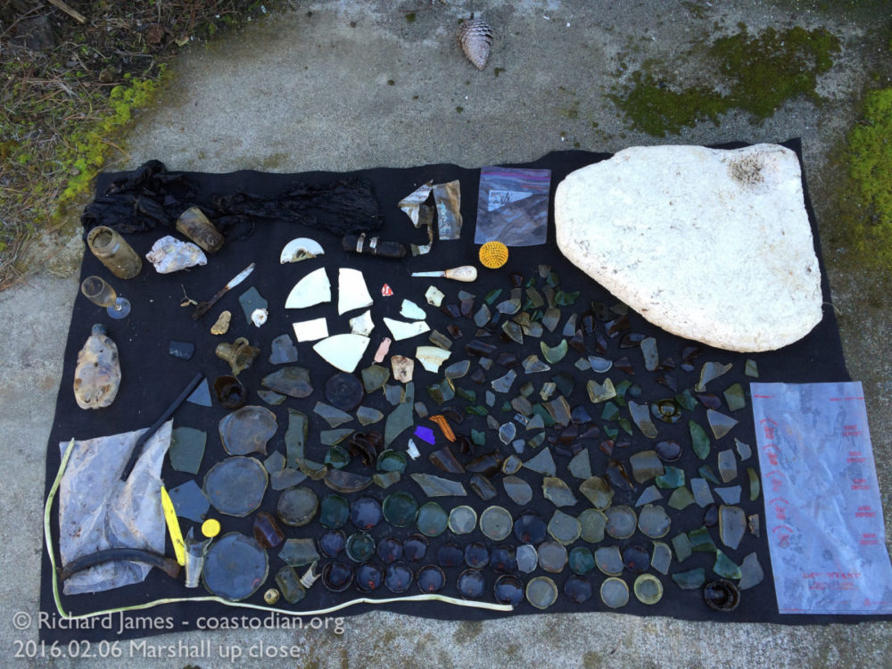 IMG_3279 Published April 2, 2016 at 1000 × 750 in Respect Tomales Bay – The glass tells a story Glass shards and other trash from below Marshall Tavern ©Richard James – coastodian.org