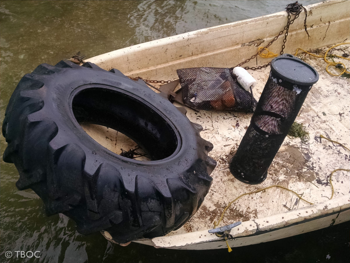 IMG_20151206_113018493 Published January 17, 2016 at 1200 × 900 in Save our Tomales Bay – 37 Tomales Bay Oyster Company pitches in to clean up the bay Tractor tire, lost oyster gear – all picked up by TBOC workers Dec. 2015.