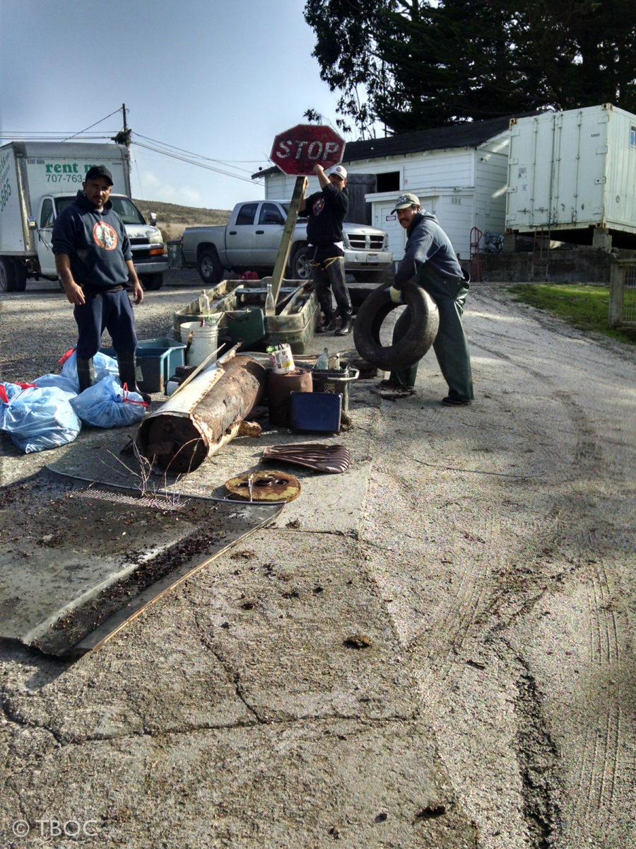 IMG_20151210_112315546_HDR Published January 17, 2016 at 900 × 1200 in Save our Tomales Bay – 37 Tomales Bay Oyster Company pitches in to clean up the bay water heater, car hood duck hunter boat, plastic of all sorts, street signs – all picked up by TBOC workers Dec. 2015.