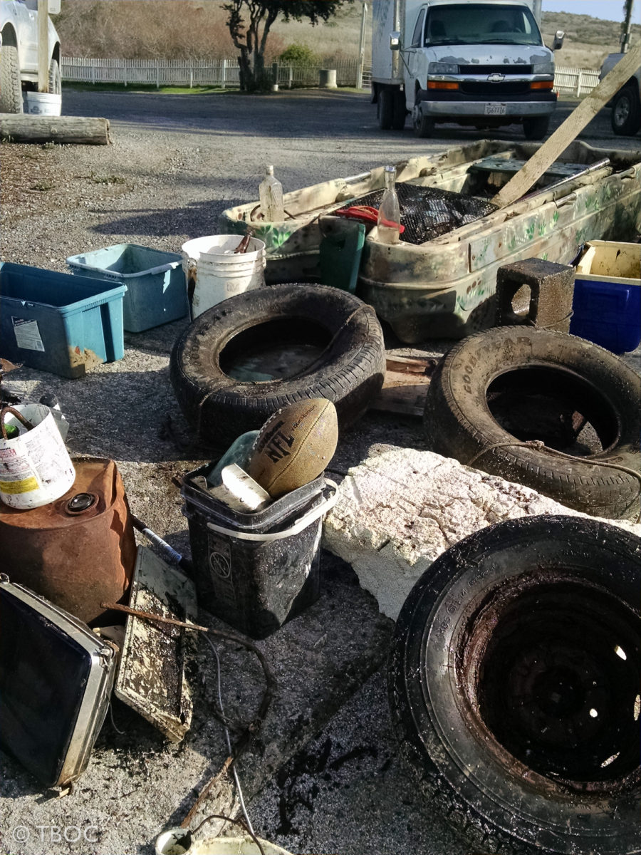 IMG_20151210_113453482 Published January 17, 2016 at 900 × 1200 in Save our Tomales Bay – 37 Tomales Bay Oyster Company pitches in to clean up the bay tires, foam football, plastic of all sorts – all picked up by TBOC workers Dec. 2015.