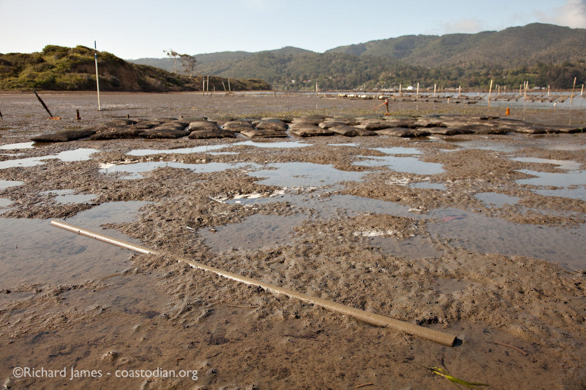 ©RJames.IMG_8269.cc.cw Published May 6, 2014 at 1200 × 800 in Save our Tomales Bay – part 15 Tomales Bay Oyster Company stuck in the mud, along with all their trash abandoned PVC pipes – Tomales Bay Oyster Company