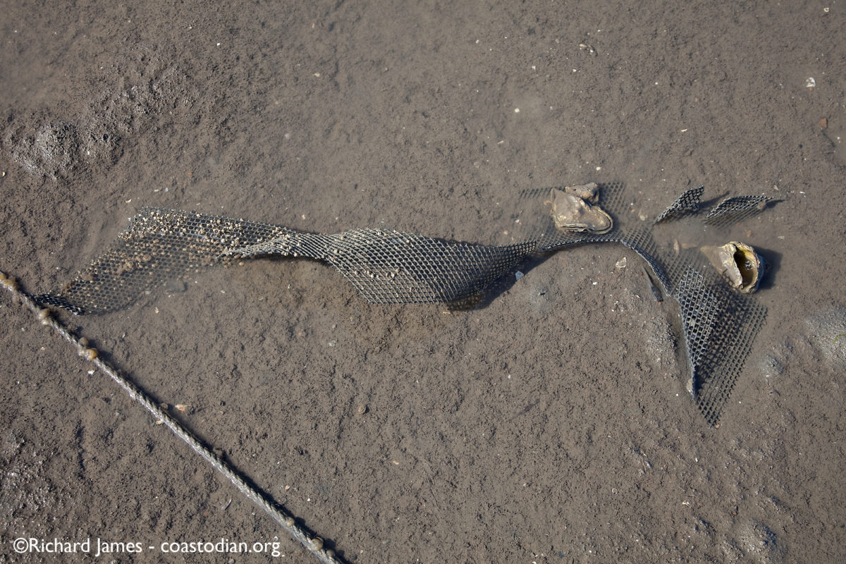 ©RJames.IMG_8298.cc.cw Published May 6, 2014 at 1200 × 800 in Save our Tomales Bay – part 15 Tomales Bay Oyster Company stuck in the mud, along with all their trash abandoned grow out bags covered with marine growth – Tomales Bay Oyster Company