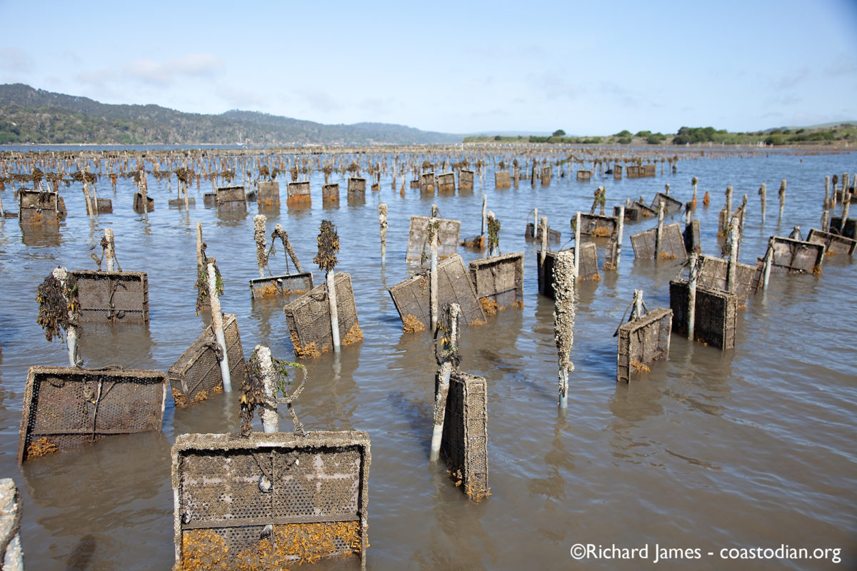 ©RJames.IMG_8303.cc.cw Published May 6, 2014 at 1200 × 800 in Save our Tomales Bay – part 15 Tomales Bay Oyster Company stuck in the mud, along with all their trash abandoned plastic trays – Tomales Bay Oyster Company