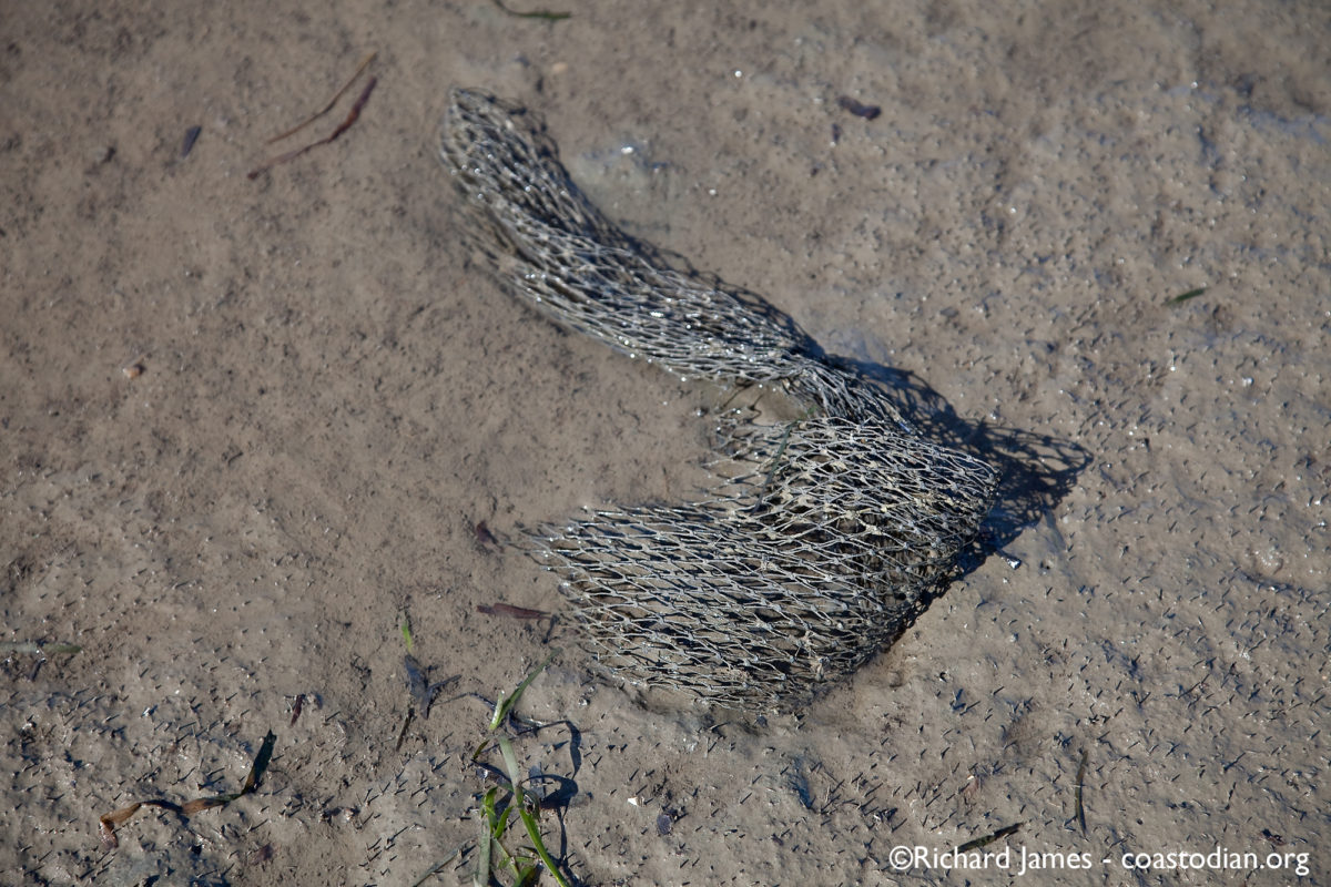 ©RJames.IMG_8321.cc.cw Published May 6, 2014 at 1200 × 800 in Save our Tomales Bay – part 15 Tomales Bay Oyster Company stuck in the mud, along with all their trash retail oyster bag stuck in the mud – Tomales Bay Oyster Company